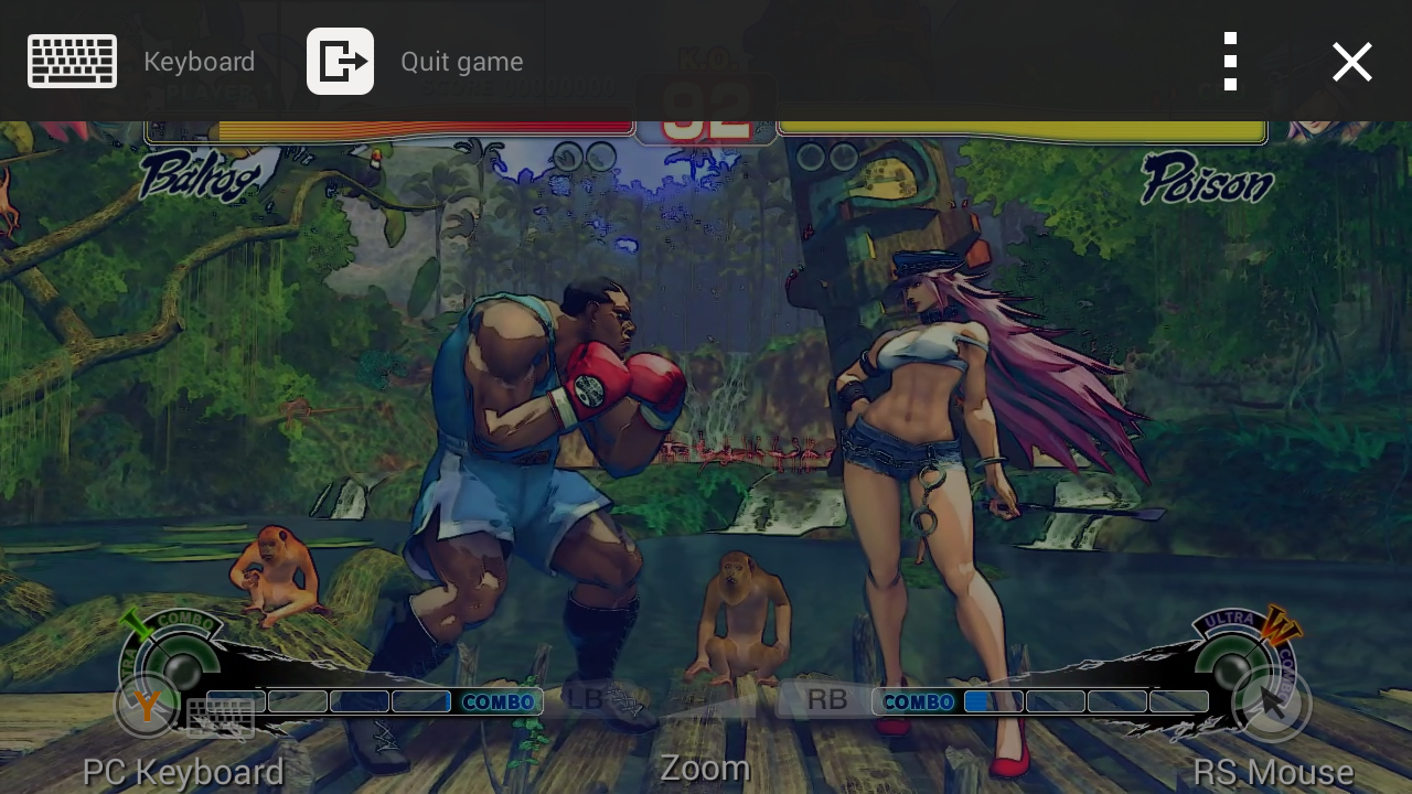 The on-screen controls will bring up a menu screen with three options: Keyboard, Quit, and three-dot menu.