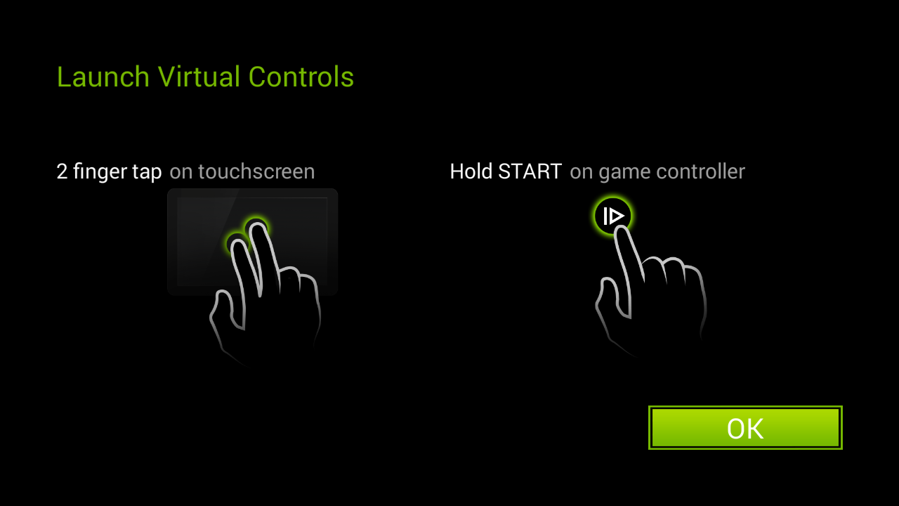 GameStream on-screen controls, use a two-finger tap or long-press the